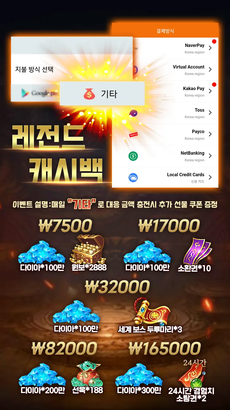이러한 해당 게임은 무료로 플레이할 수 있지만 게임 내 일부 과금 요소도 있는데, 이때 게임 내에서 패키지로 구매 시에 결제 수단을 기타를 선택하면 더욱 풍성한 추가 선물도 받을 수 있으므로, 해당 부분은 사전에 주지할 필요가 있다.