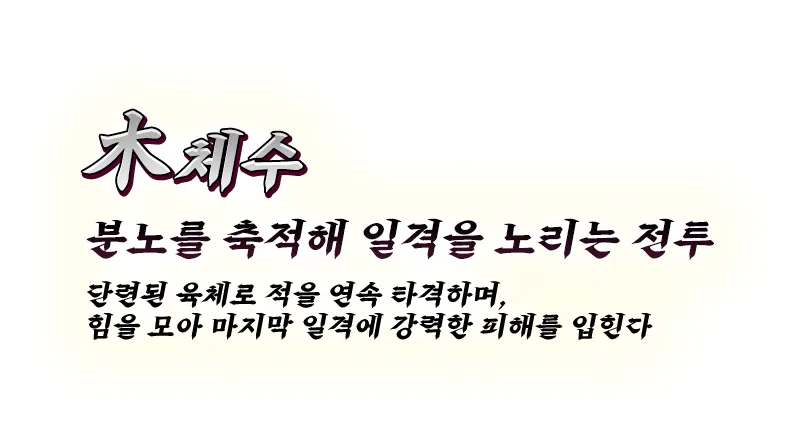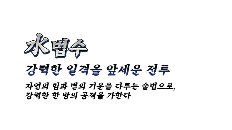 더불어 법수는 자연의 힘과 별의 기운을 다루는 술법으로 강력한 한 방의 공격을 가하는 전투에 능하며, 체수는 단련된 육체로 적을 연속 타격하며 힘을 모아 마지막 일격에 강력한 피해를 가하는 전투에 능하다.